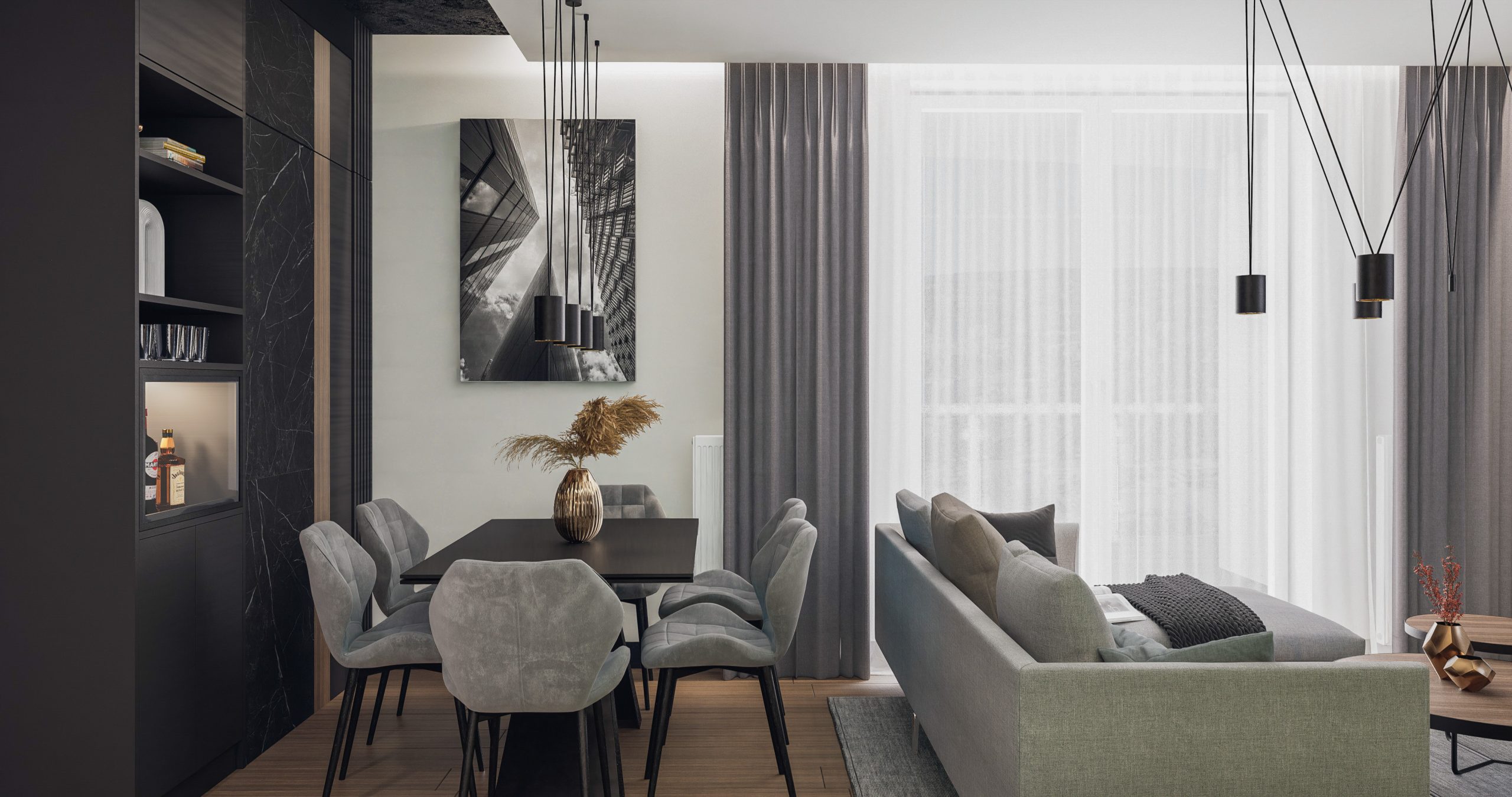 Mieszkanie w Bulwary Park w Rzeszowie emanuje męskim charakterem, a każdy jego m2 został starannie zaplanowany, aby odzwierciedlić indywidualność i wyrafinowany styl właściciela.
