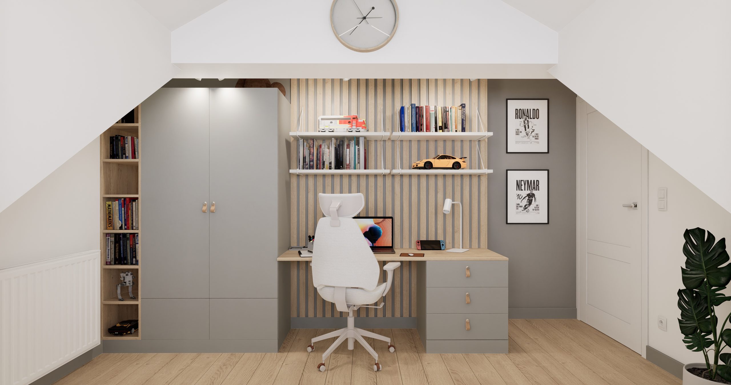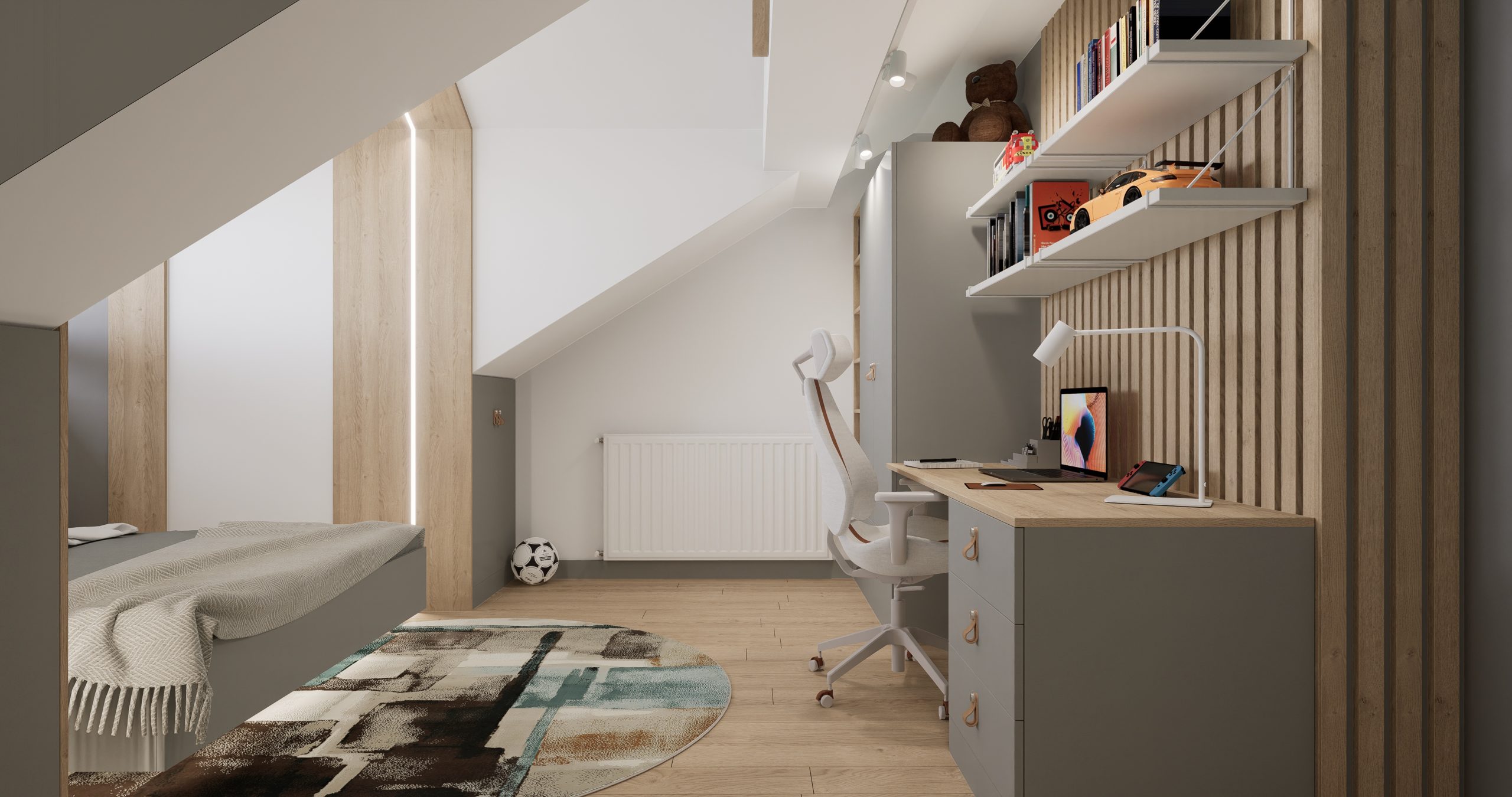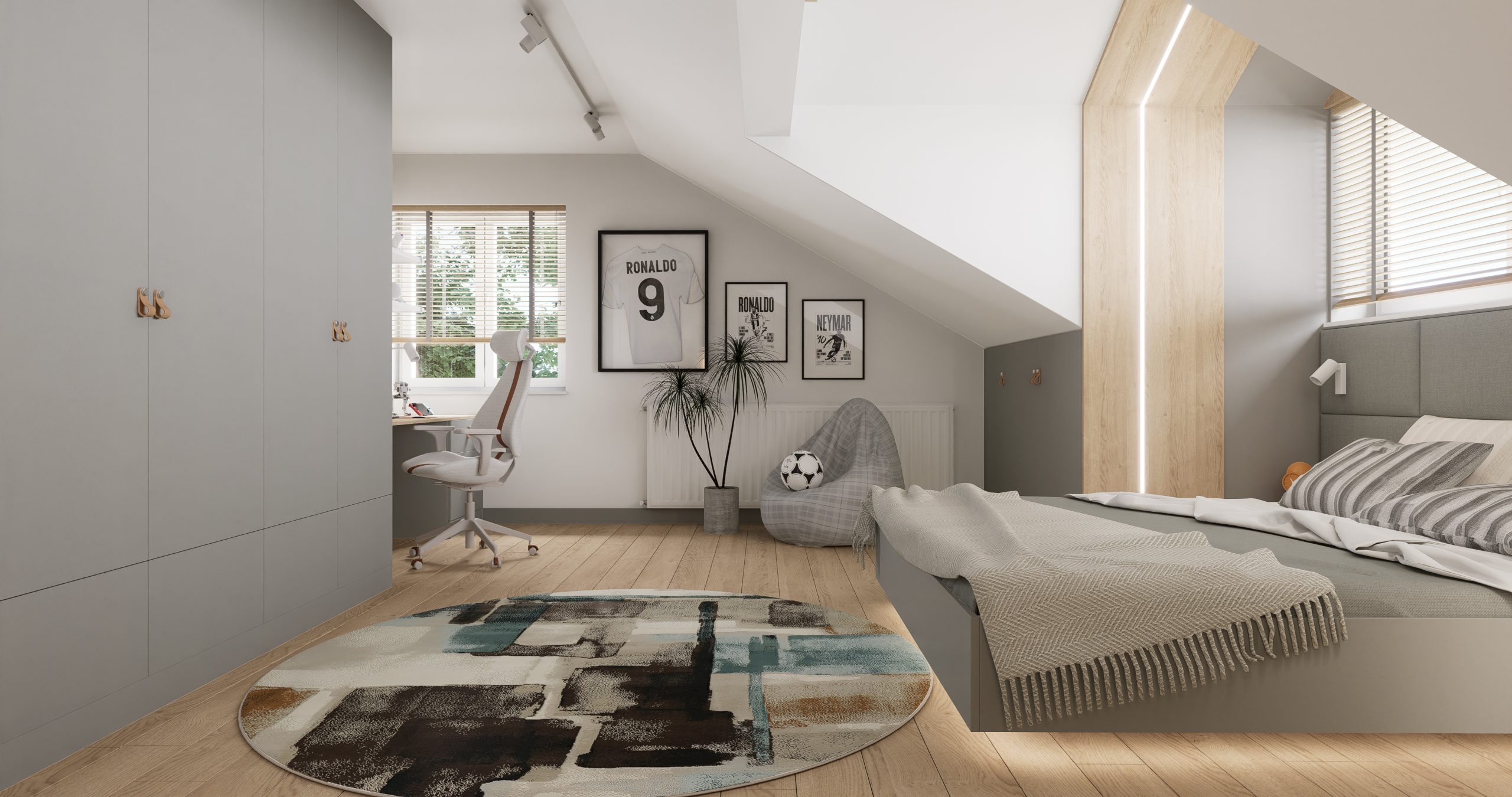 Ten projekt to doskonała równowaga między funkcjonalnością a estetyką, tworząc miejsce, które nie tylko spełnia praktyczne potrzeby, ale także odzwierciedla pasje i osobowość naszych młodych mieszkańców!
