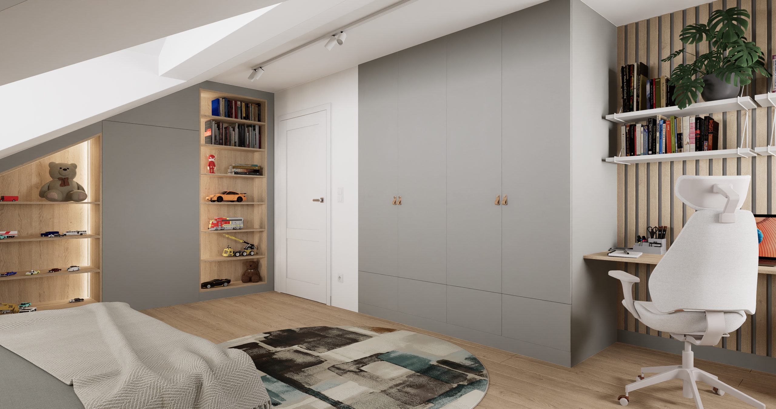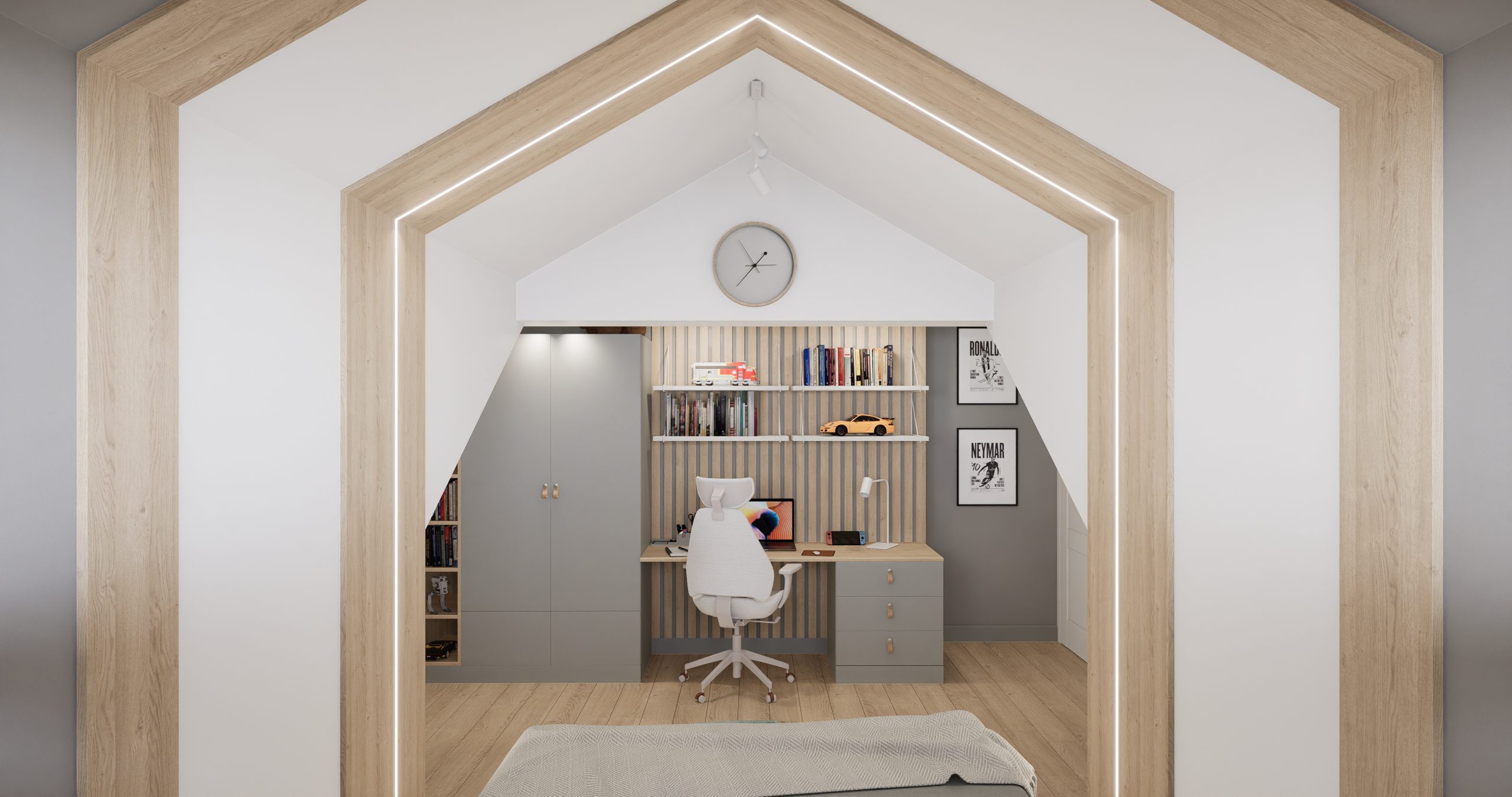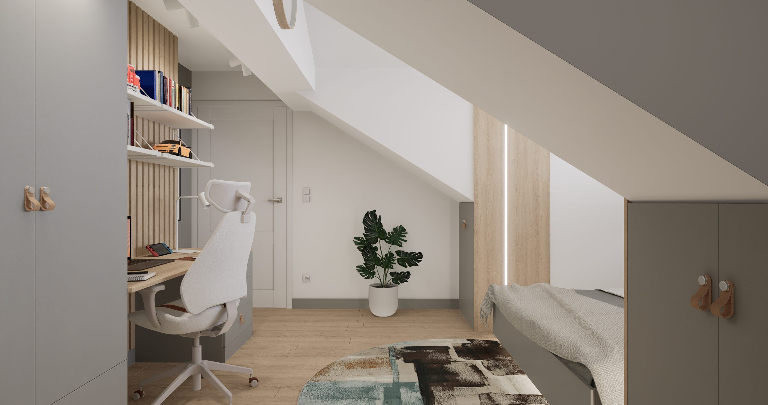 Ten projekt to doskonała równowaga między funkcjonalnością a estetyką, tworząc miejsce, które nie tylko spełnia praktyczne potrzeby, ale także odzwierciedla pasje i osobowość naszych młodych mieszkańców!